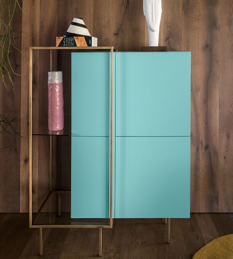 The Zoom cupboard is a piece of furniture designed by designer Uto Balmoral in 2018 for the eccentric furniture brand Mogg, a company totally Made in Italy. The cupboard, available in two different sizes, is presented as a set of simple and essential geometric shapes, which create an elegant game of full and empty spaces, as well as a clear contrast of shapes, colors and materials.