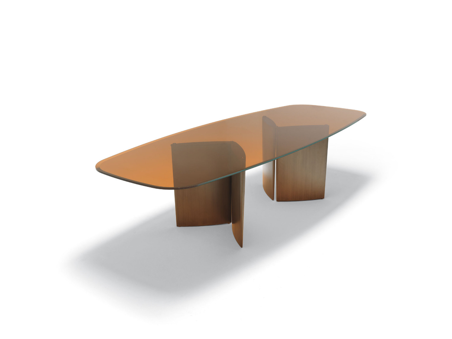 La table Ala de MisuraEmme est issue de la rencontre entre la créativité et l'artisanat. S'il est présent à la maison, il devient immédiatement le protagoniste du salon. Le plateau rond ou semi-ovale, défini par un bord qui réduit la perception deson épaisseur, est soutenu par despieds coniques.