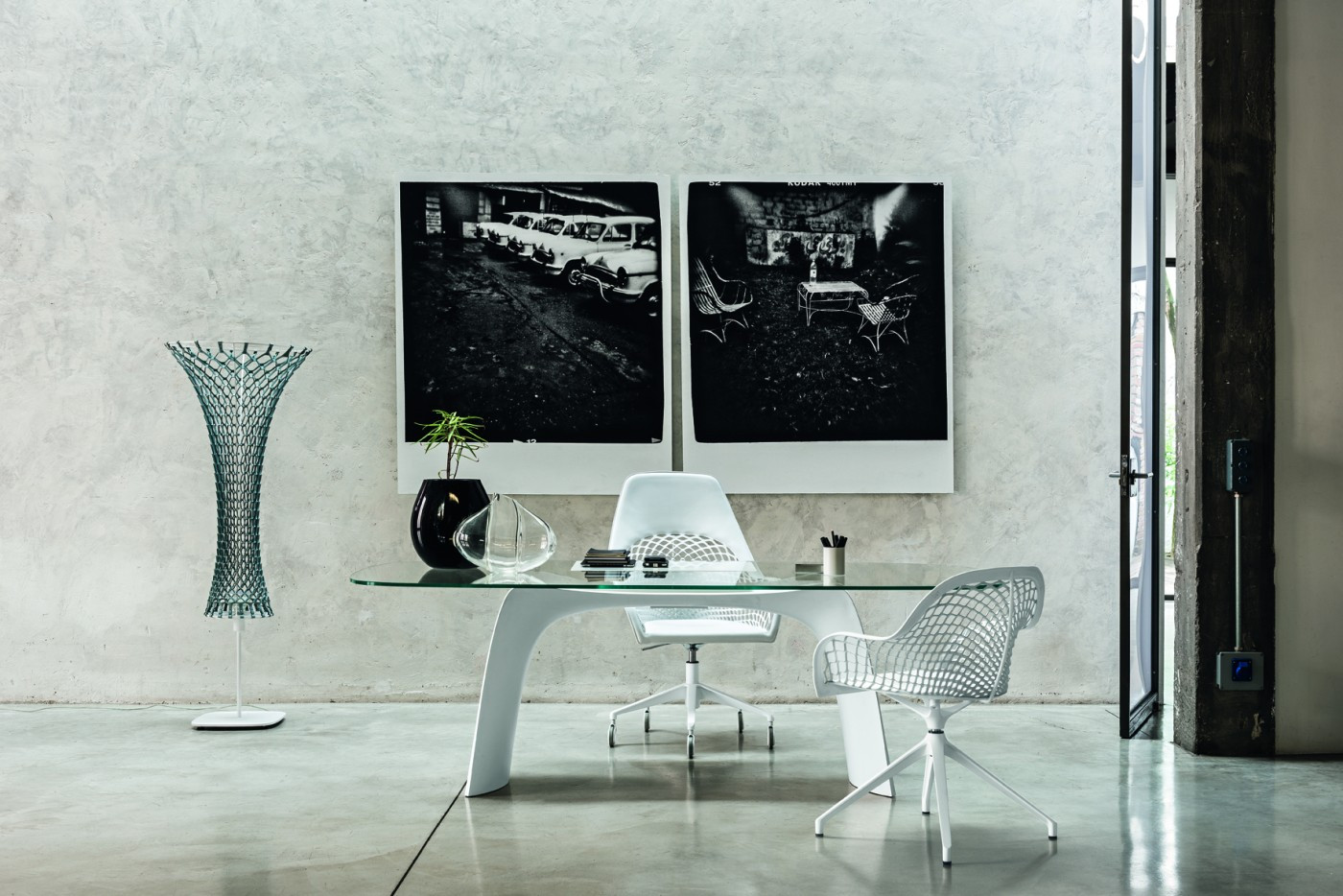 La table Moonlight de Midj est composée d'une structure sculpturale et sa combinaison avec des couleurs et des matériaux souligne le design attrayant de la table.