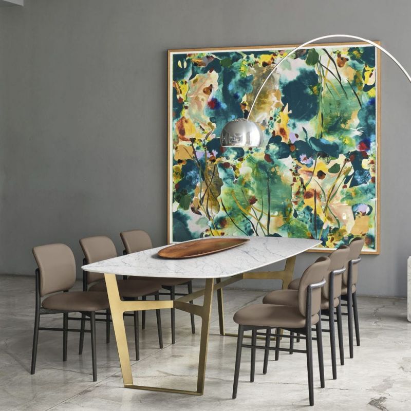 La table Obi de San Giacomo est une table moderne caractérisée par un design dynamique. La base est en métal peint, tandis que le plateau peut être réalisé en différentes formes et matériaux : plateau ovale, plateau rectangulaire, disponible en matériau, bois, verre ou en différentes finitions. Il peut également être en céramique, dans ce cas chaque plateau a des détails différents dans le traitement, selon la variante choisie. C'est une table très polyvalente, adaptée à n'importe quel espace de votre maison, elle est fabriquée avec des matériaux de haute qualité.