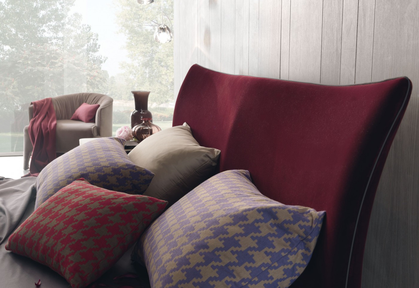 Le lit Margareth de MisuraEmme créé par Carlo Marelli et Massimo Molteni est un lit au design sinuso, c'est l'union entre l'élégance et l'exclusivité du sommeil. La tête de lit est en acier harmonique, recouverte de tissu. La base est en bois massif et est également enveloppée de tissu, ce qui met en valeur le pied en bois massif qui soutient la structure.