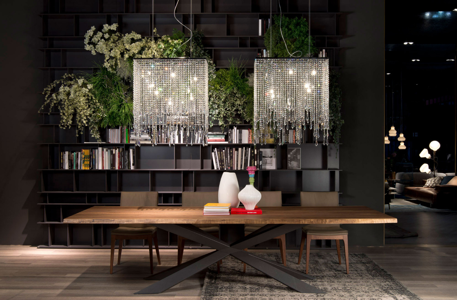 La lampada Venezia di Cattelan Italia è stata disegnata da Emanuele Zenere appartiene ad una famiglia di lampade, soffitto, parete e da terra con telaio in acciaio cromato e paralume composto da pendagliere di cristallo.