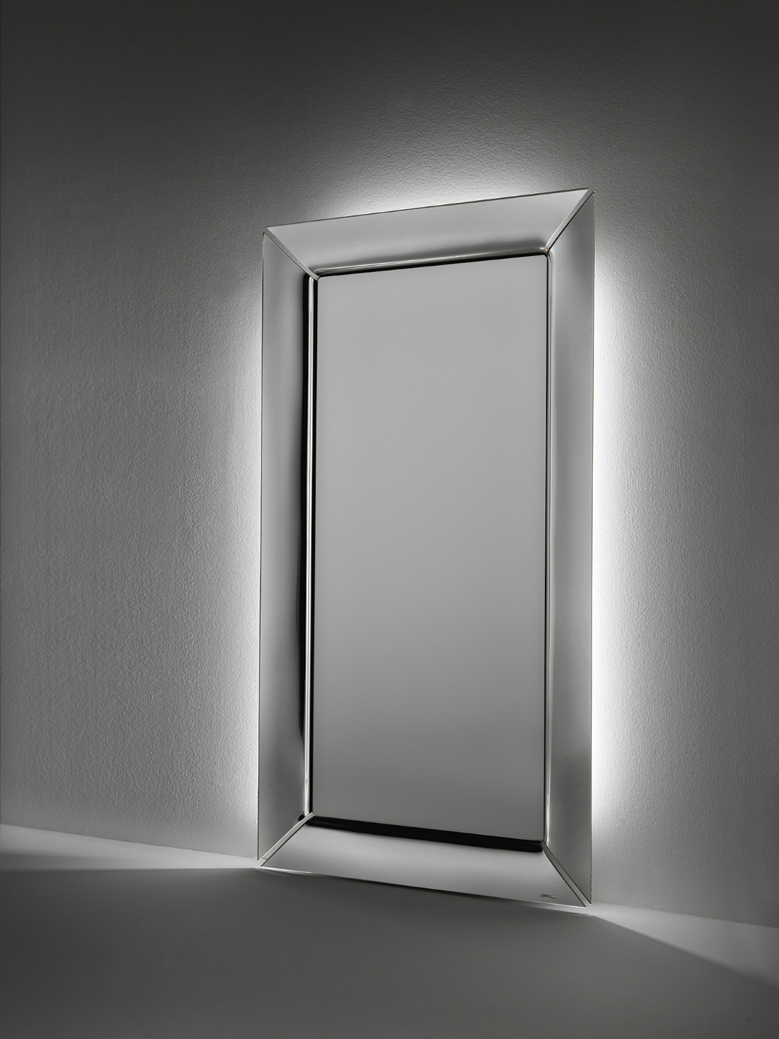 Os espelhos são essenciais em qualquer ambiente, pois tornam o espaço mais claro e amplo; a luz, de fato, colidindo com a superfície espelhada do espelho Caadre e com os elementos de vidro que compõem a moldura cria uma ilusão de ótica de espaços maiores.