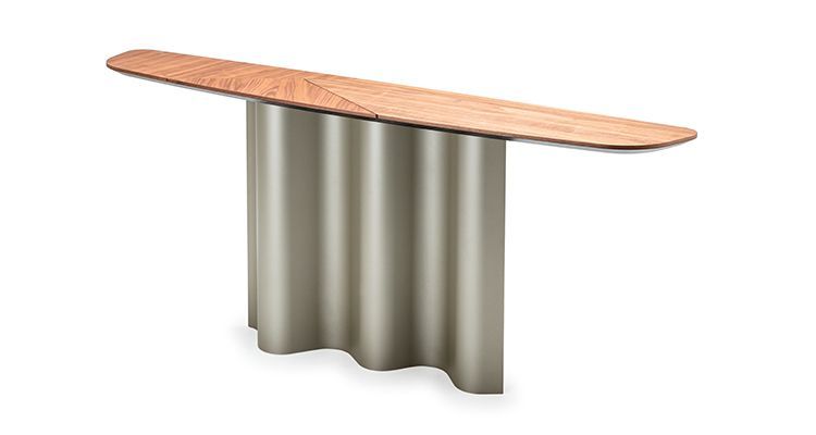 O elemento central do projeto é a base escultural em metal, caracterizada por linhas fluidas e sinuosas que remetem ao movimento da água e conferem à consola um aspeto dinâmico e elegante. As curvas suaves criam um jogo refinado de cheios e vazios, tornando a Nettuno Wood uma verdadeira obra de arte além de um móvel funcional. Os acabamentos metálicos, disponíveis em várias opções sofisticadas, permitem personalizar a consola e combiná-la harmoniosamente com outros móveis Cattelan Italia.