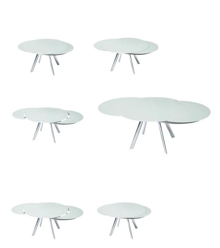 A mesa Giro da Bontempi é uma mesa redonda que, graças a um design simples e ao mesmo tempo original, integra-se perfeitamente a uma sala de jantar ou sala de estar, restaurando a elegância extra dos móveis. Pode acomodar até um máximo de 10 pessoas e a estrutura está disponível em duas versões: com quatro pernas ou com uma única perna central.