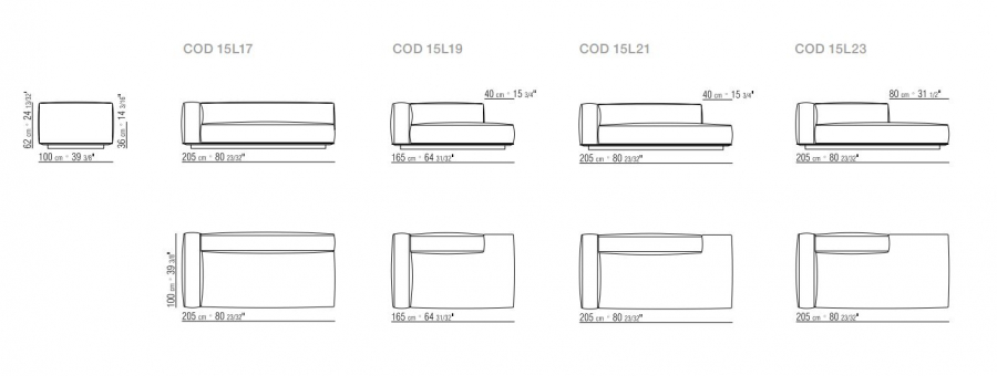 Capa amovível tanto na versão em pele como na versão em tecido.